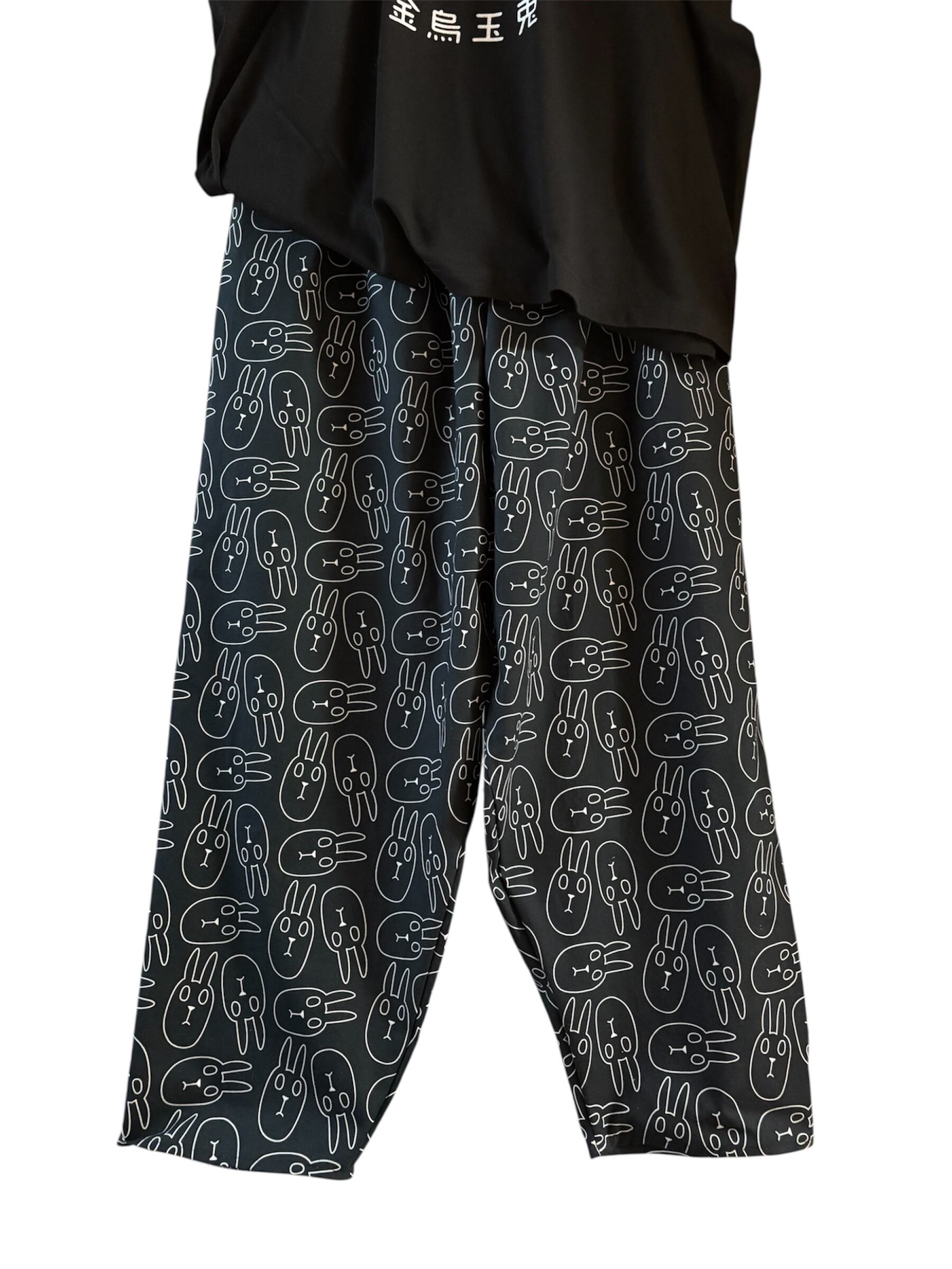 ユニセックスゆるオズボーンロング『うさぎ黒白』オリジナルファブリック