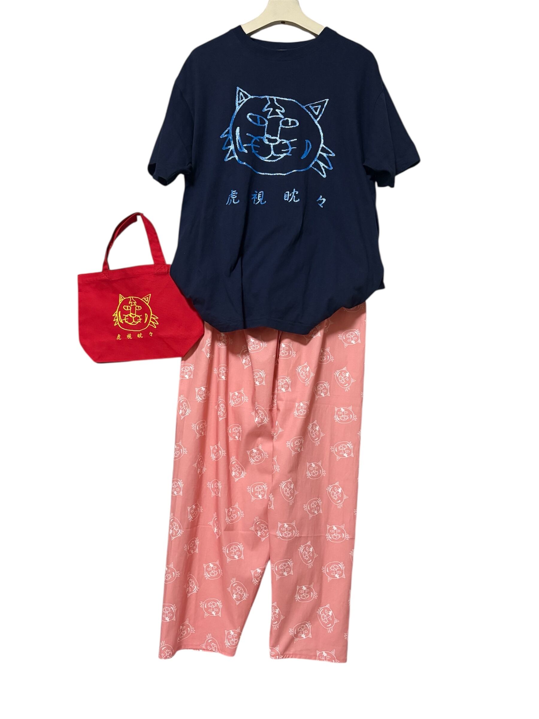 ユニセックスゆるオズボーンロング『虎視眈々桃白』オリジナルファブリック