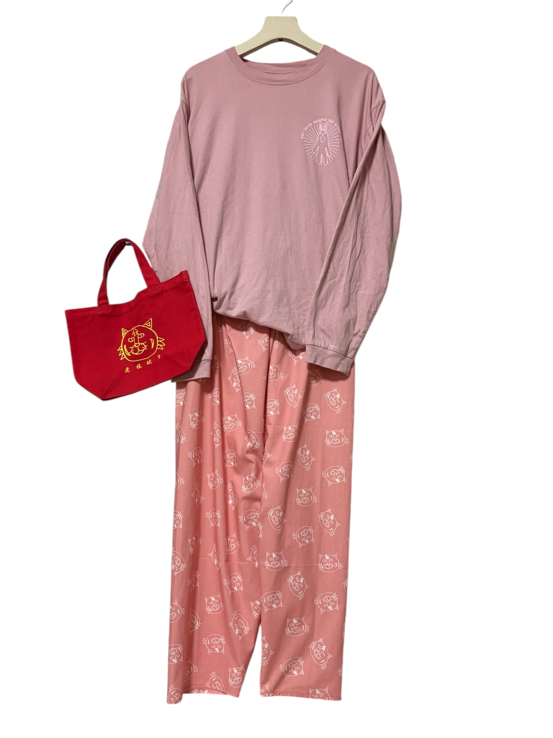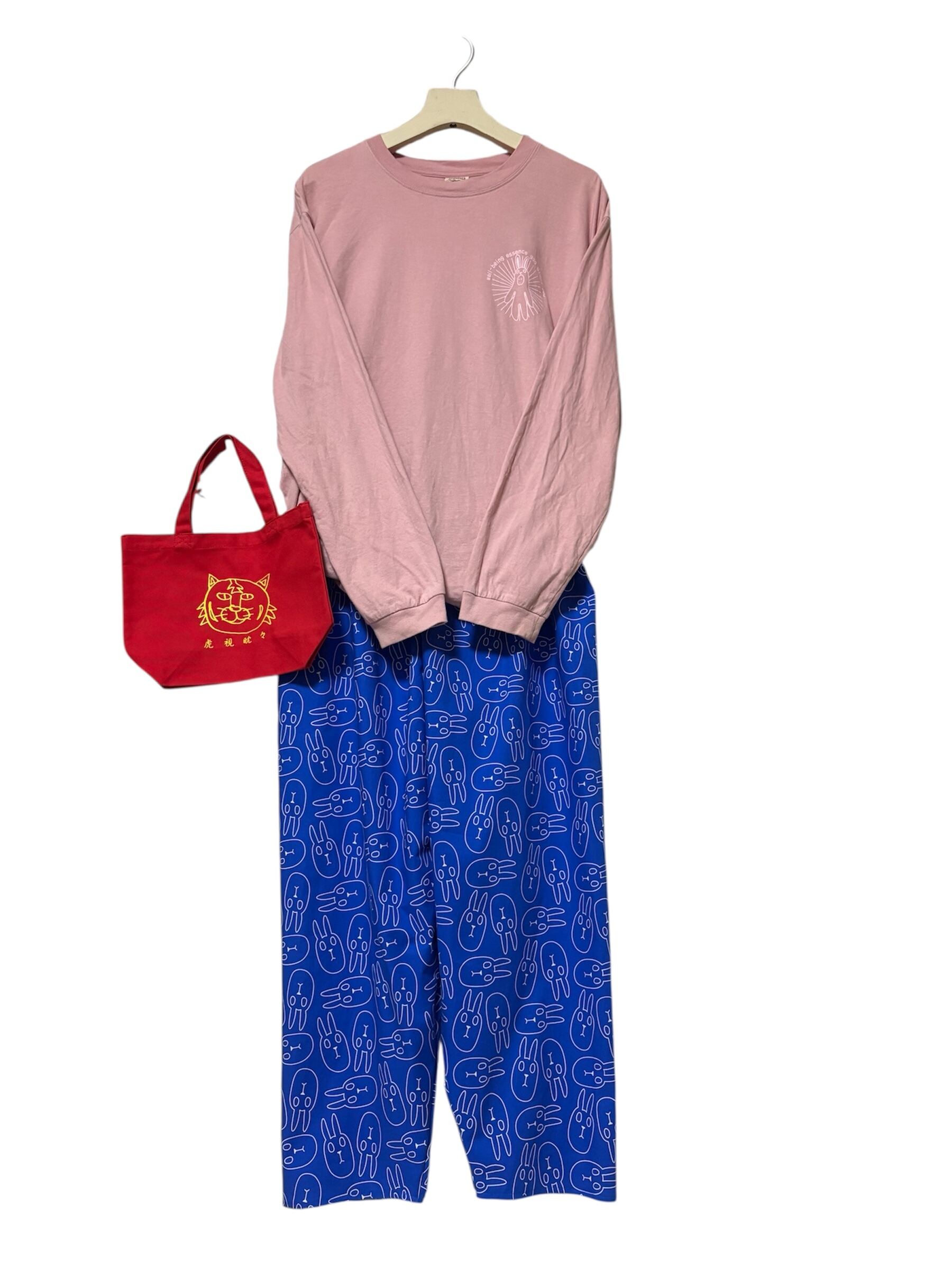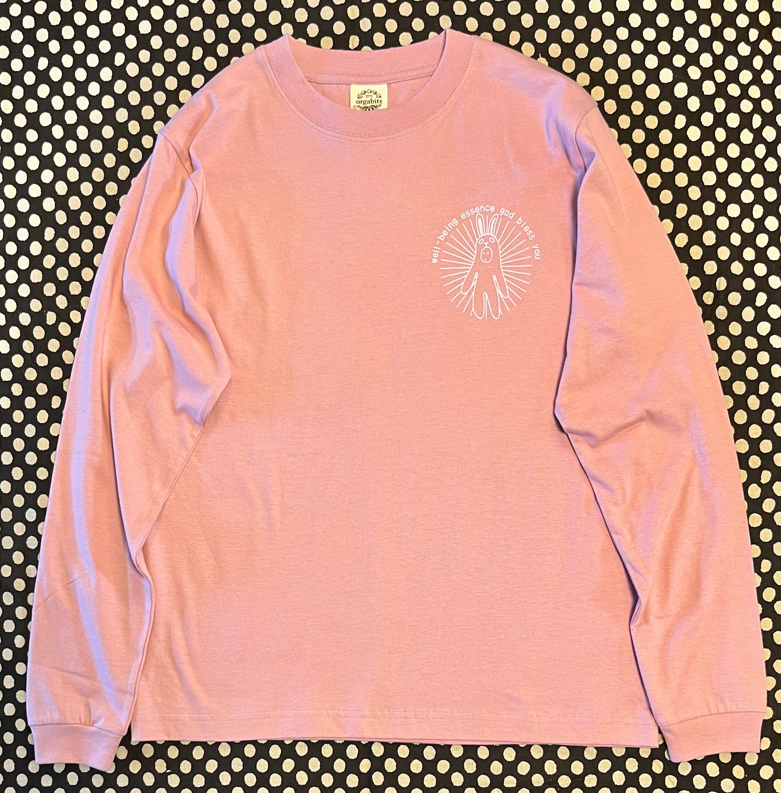 ロンT『god bless rabbit 』うさぎさん薄桃/薄緑/オーガニックコットン男女兼用