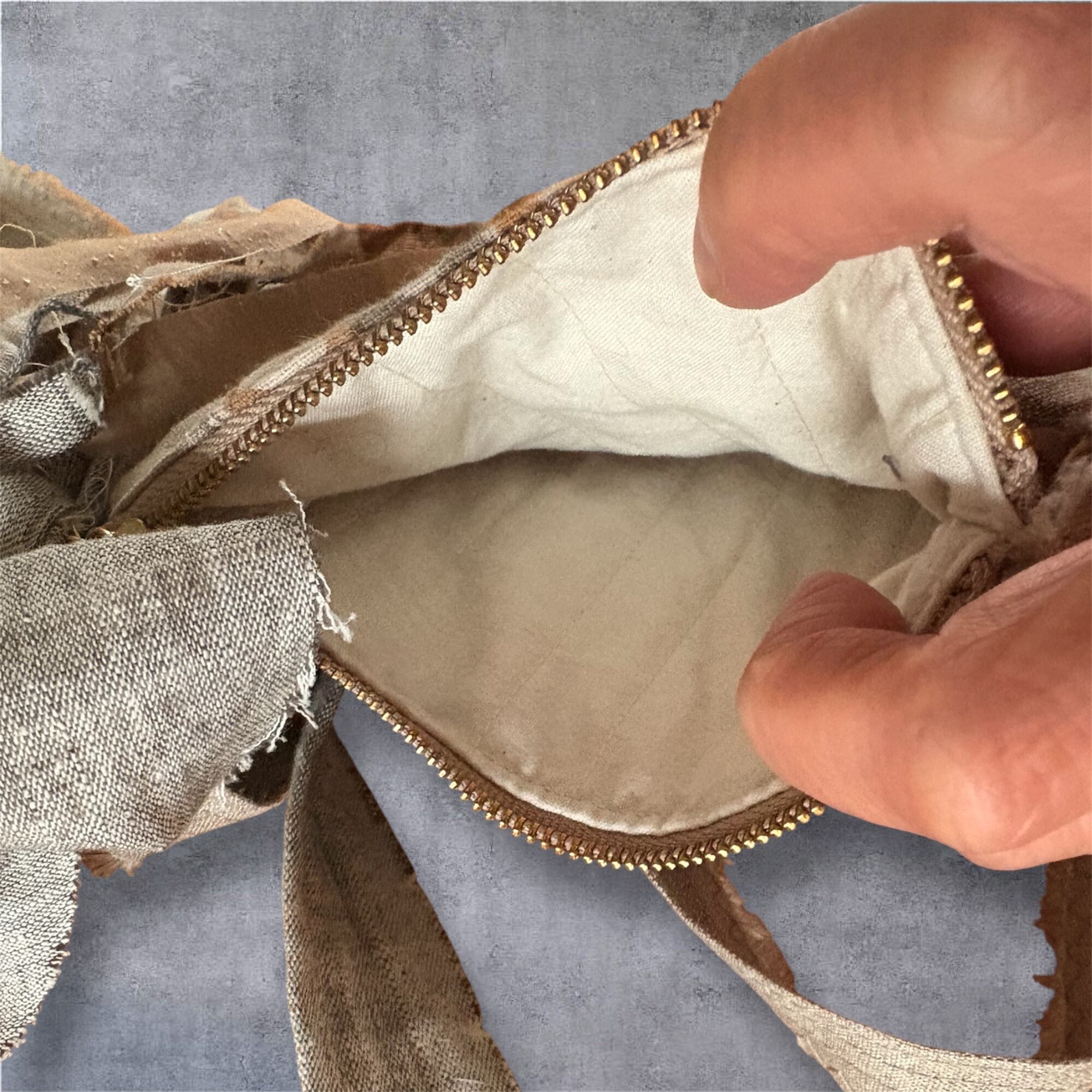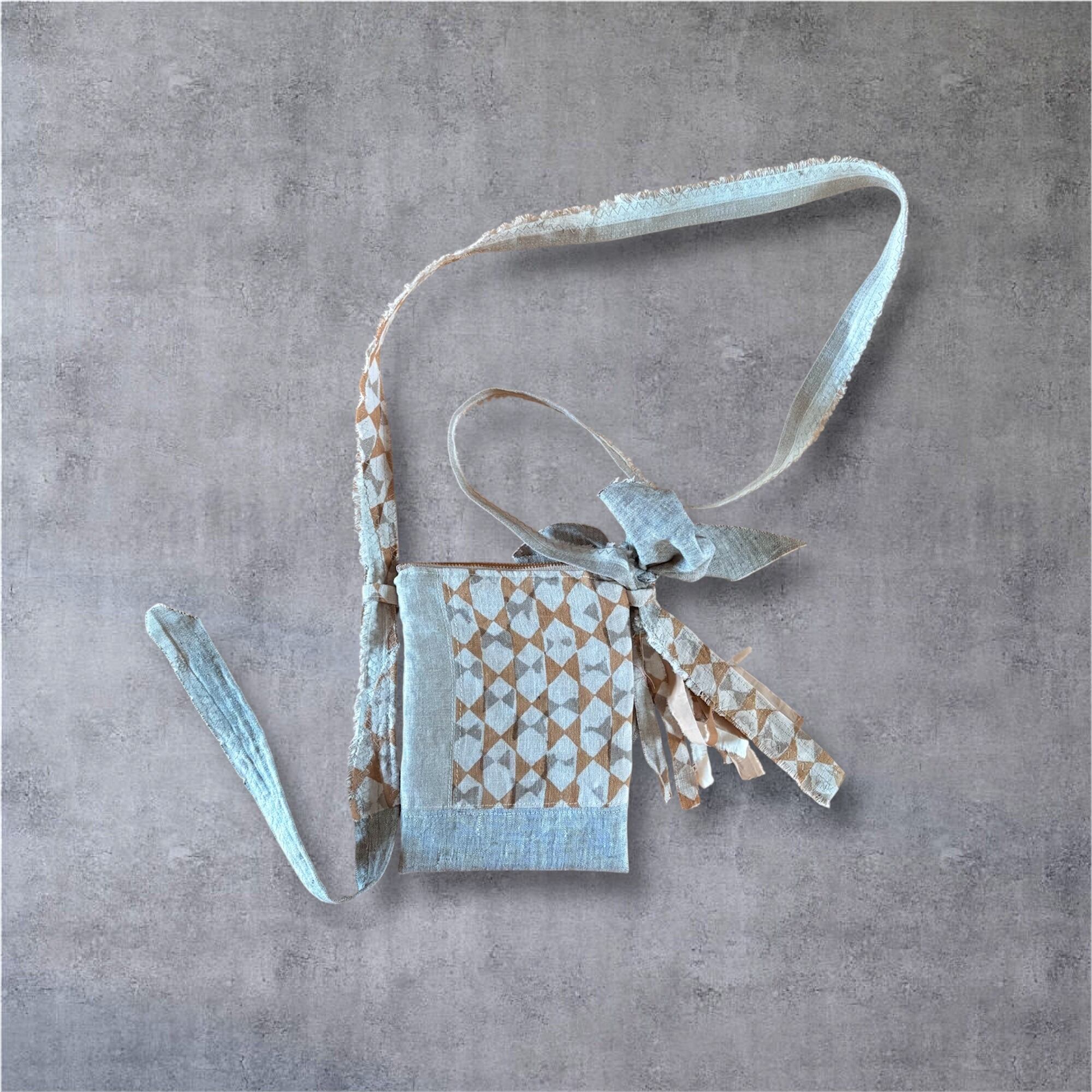 1点もの。スマホや鍵など「あれ?どこいったかしら?」なんて物を入れて持ち歩くのに最適なサイズのポーチです。