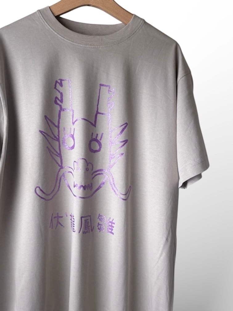 Tシャツ『伏流鳳雛』龍Tシャツ 紫ラメ オーガニックコットン男女兼用