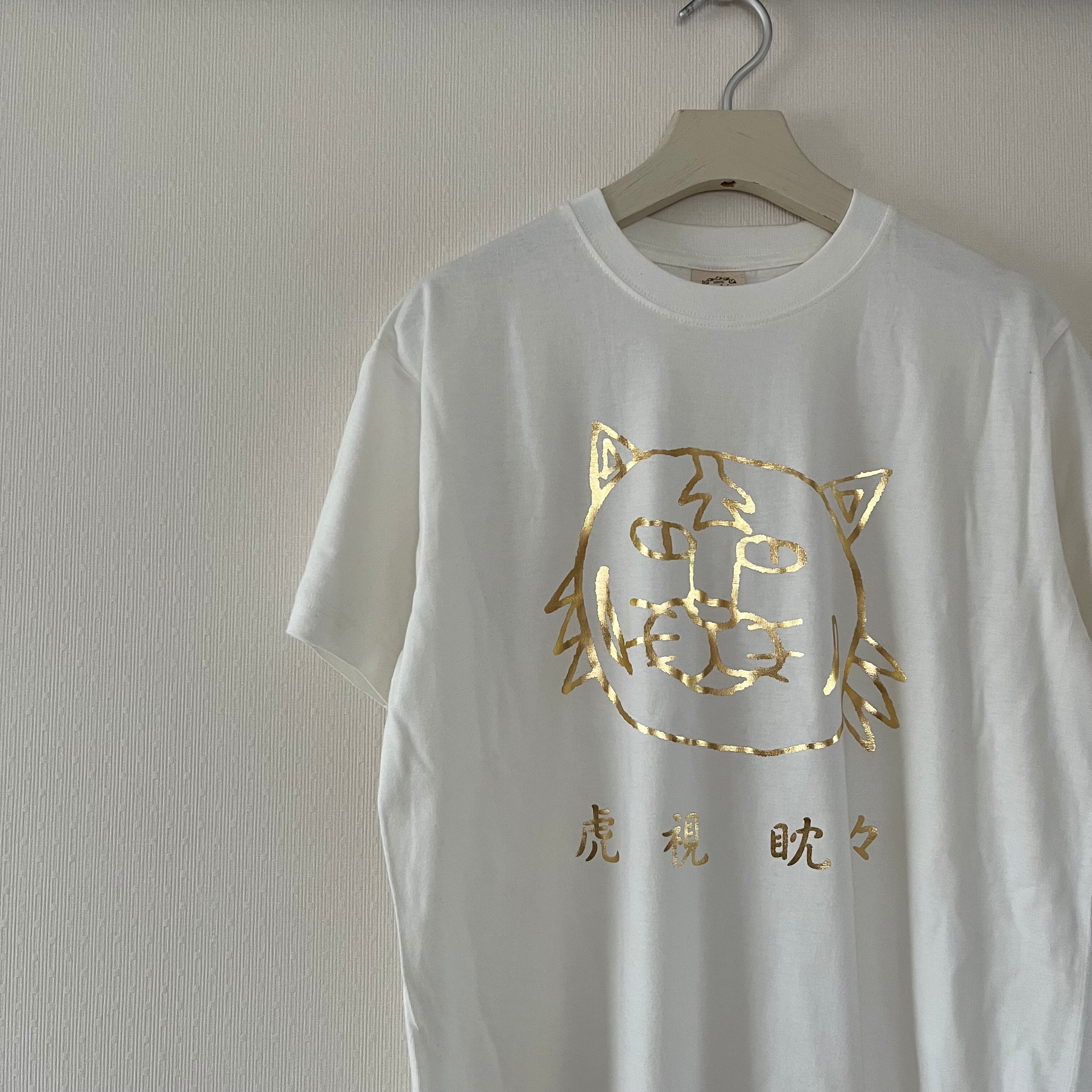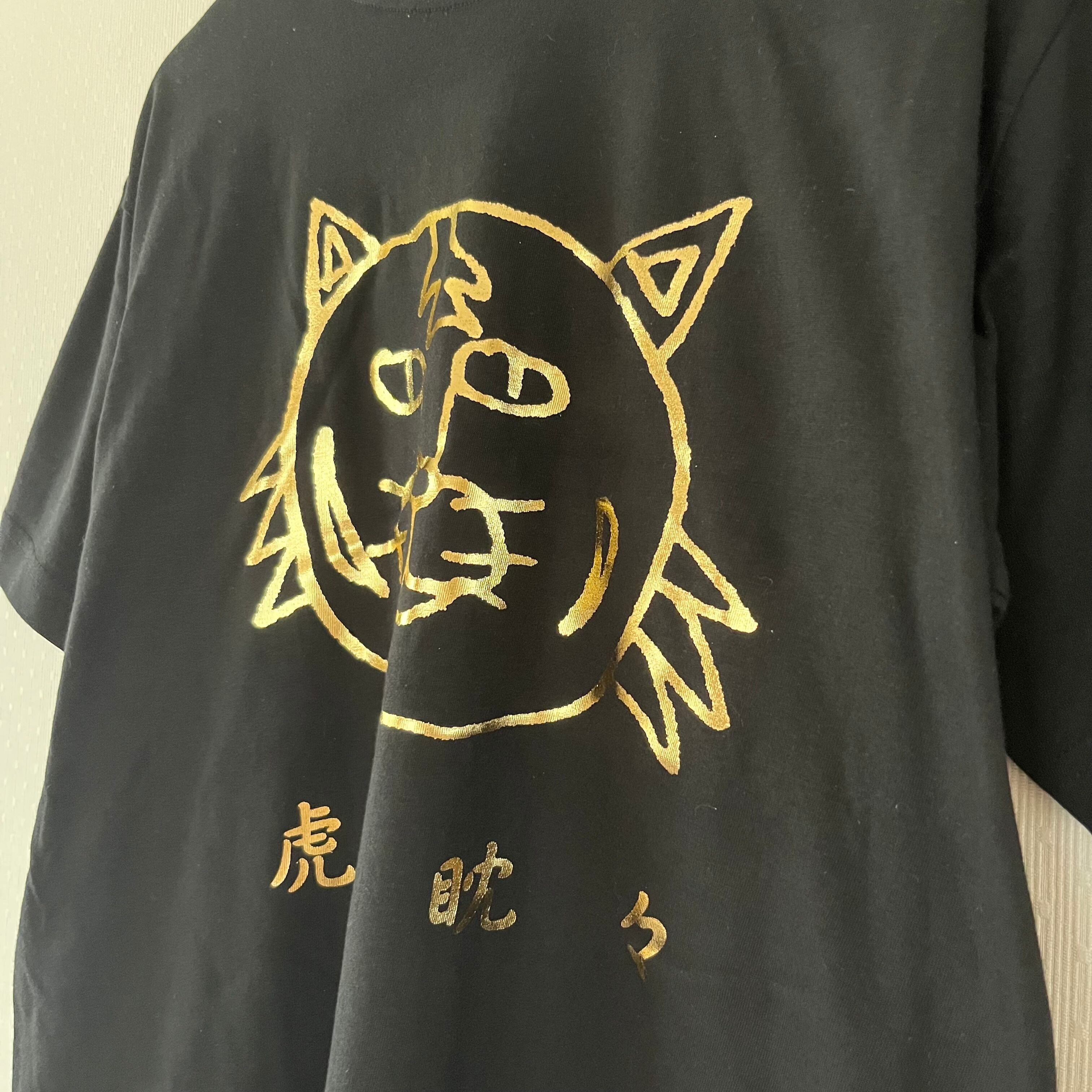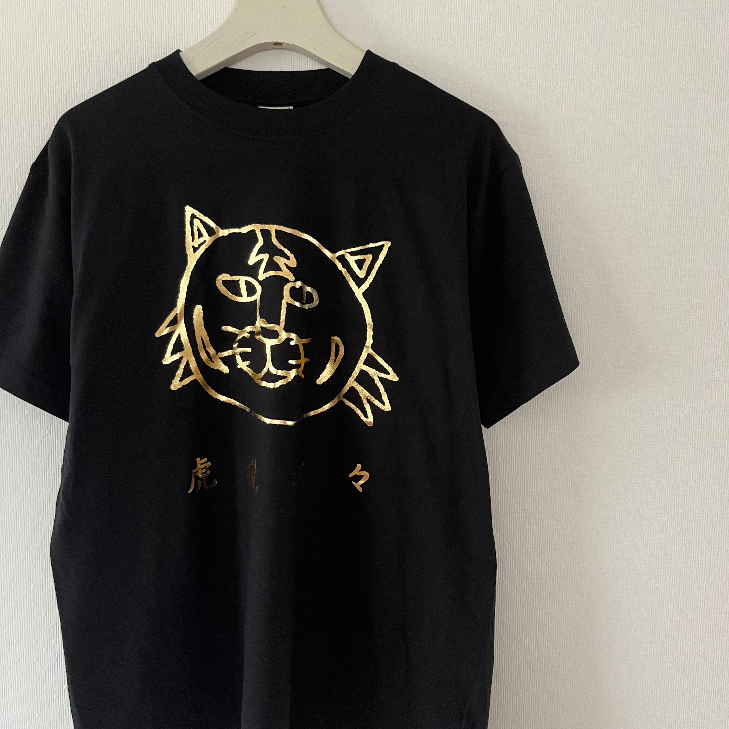 Tシャツ『虎視眈々』黒S〜XXL金箔 オーガニックコットン男女兼用