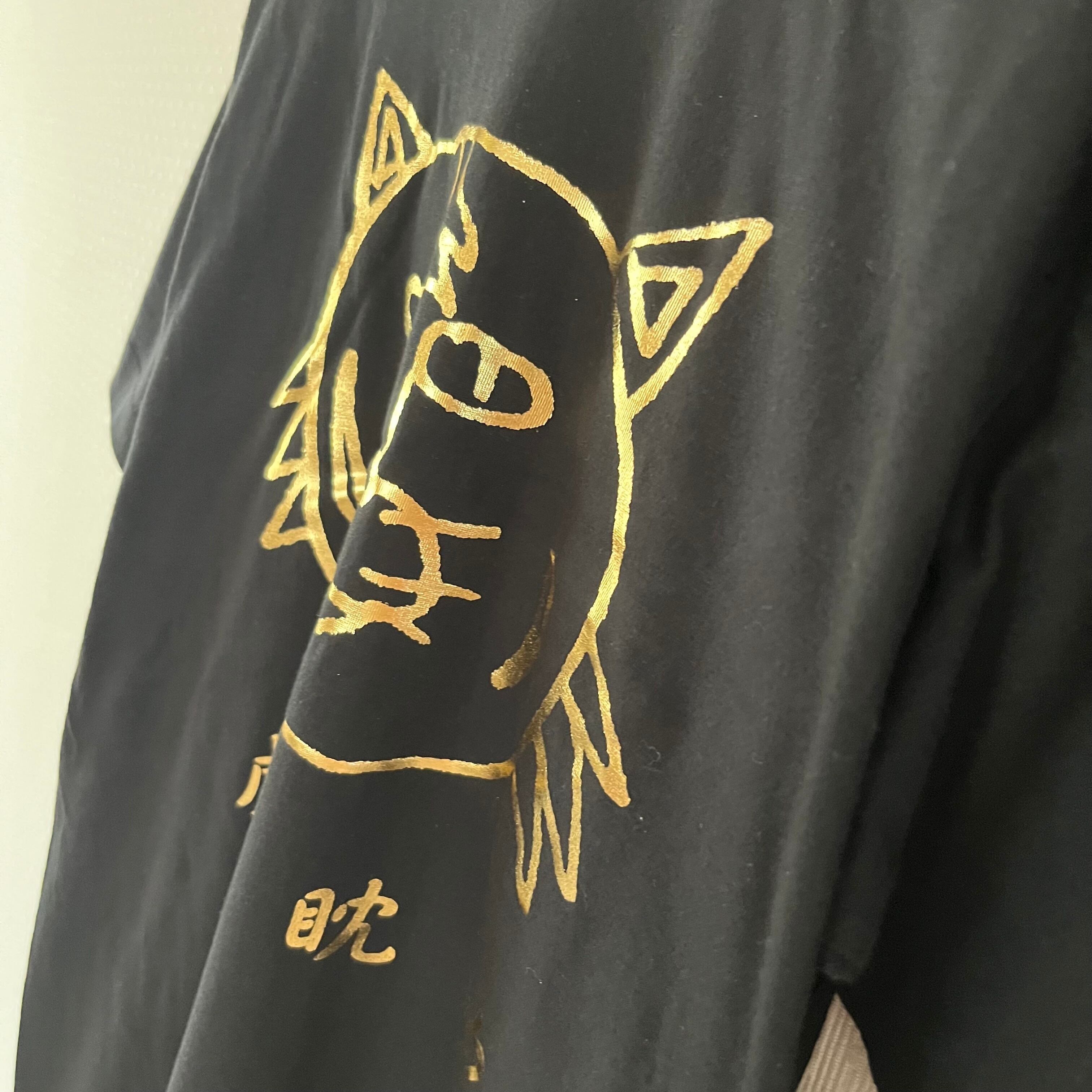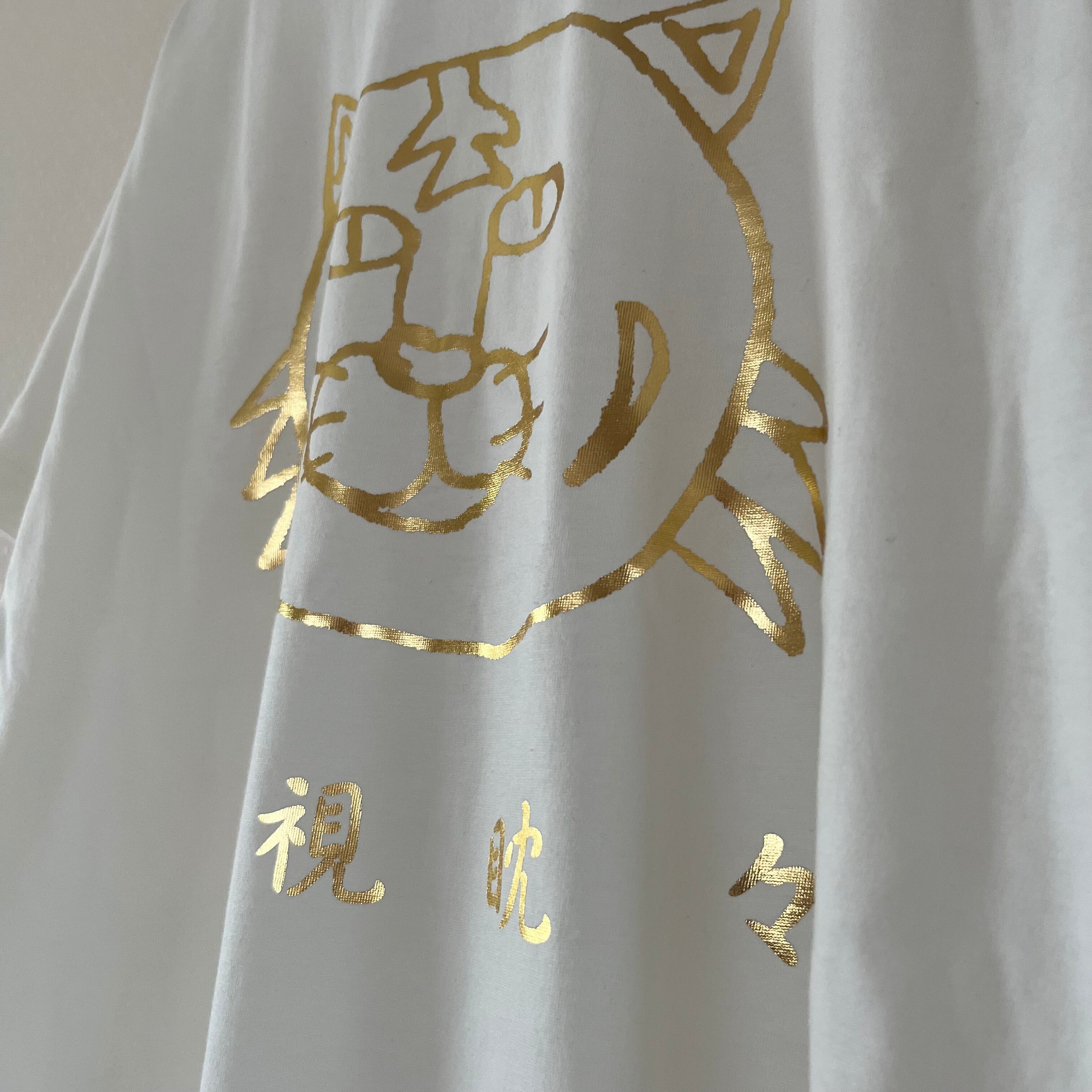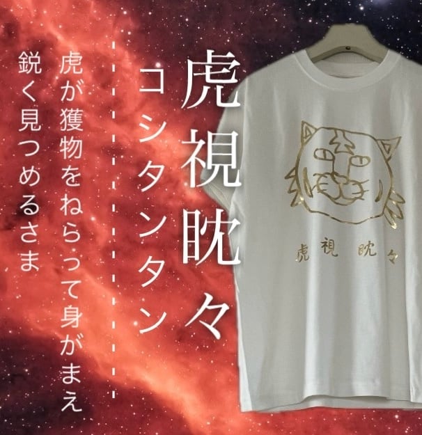 Tシャツ『虎視眈々』黒S〜XXL金箔 オーガニックコットン男女兼用