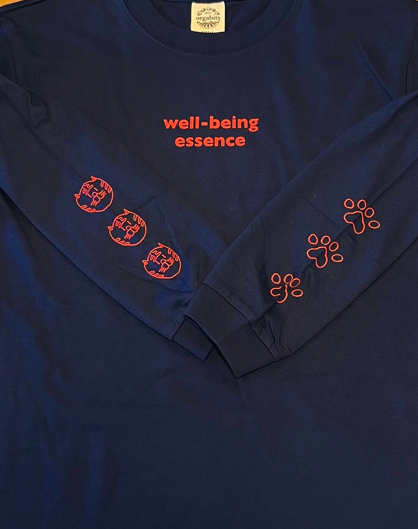 ロンT『ロゴソデとらねこ肉球ロンT』紺/オーガニックコットン男女兼用