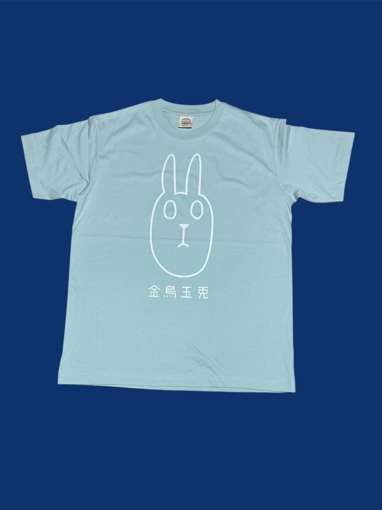 Tシャツ『金烏玉兎』薄緑 うさぎさん/S〜XXL 白ラメ オーガニックコットン男女兼用